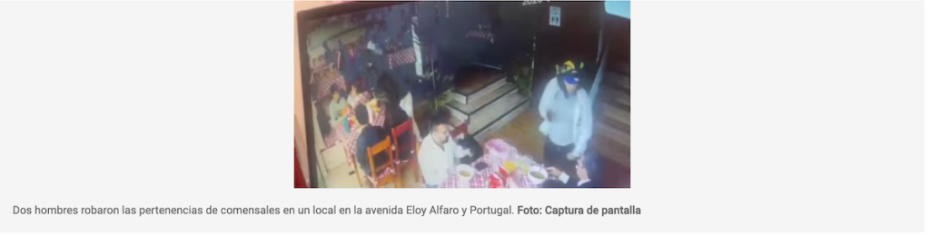 Un violento asalto a mano armada ocurrido la tarde del martes 22 de abril en un restaurante del norte de Quito, en la intersección de la avenida Eloy Alfaro y Portugal, encendió nuevamente las alertas sobre la seguridad en la capital.