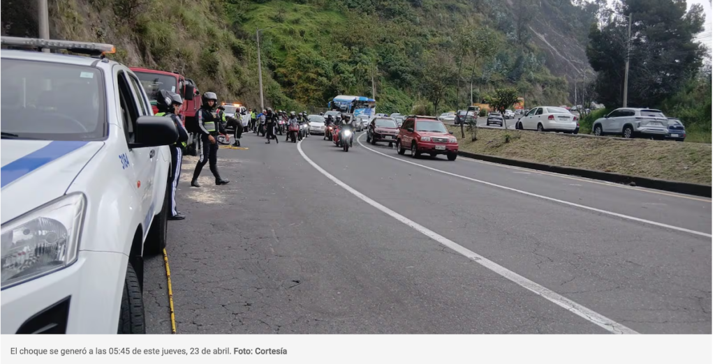 Un trágico accidente de tránsito ocurrido la mañana de este jueves 23 de abril en Quito dejó un motociclista fallecido y generó fuerte congestión en una de las principales arterias viales de la ciudad. El hecho se registró en la avenida Simón Bolívar, a la altura de Guápulo, en medio del tráfico habitual de hora pico.