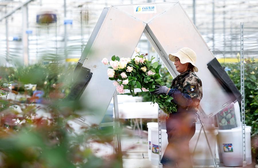 LANZHOU, El frío otoñal aumenta en Linxia, una ciudad situada en la meseta china de Loess. Aun así, el ambiente reinante en unos invernaderos inteligentes de 200.000 metros cuadrados, donde la temperatura permanece constante, disipa las gélidas condiciones externas y hace relucir aún más, bajo las luces complementarias, las hileras de rosas que ya han sido cortadas, mientras su deliciosa fragancia inunda el aire.
