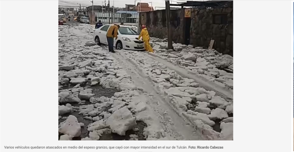 Una intensa tormenta sorprendió a la ciudad de Tulcán la tarde del domingo 26 de abril, dejando un escenario crítico: granizo acumulado de hasta 40 centímetros, viviendas inundadas y serios problemas de movilidad.