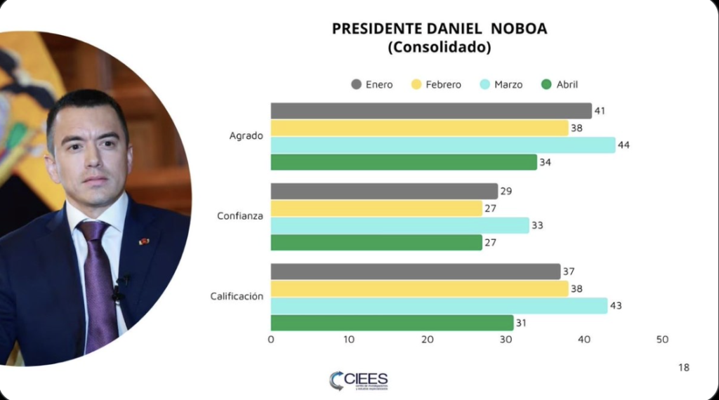Baja la aprobación y la confianza en Noboa