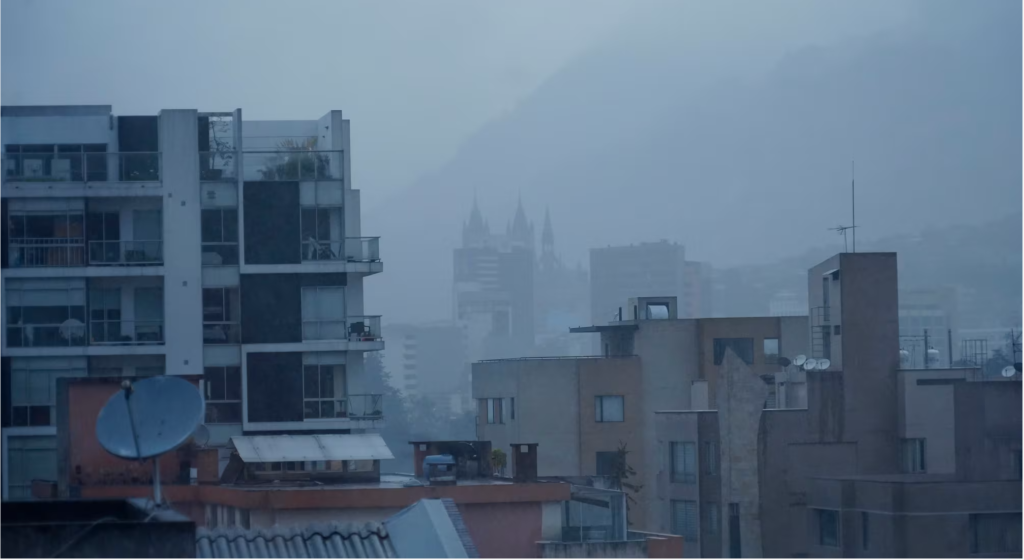 Si bien no hubo tormenta eléctrica, el cielo de la ciudad se cubrió por una capa densa de neblina y la lluvia se mantuvo de forma incesante en el norte, sur y los valles. Conocoto, el puente 7 y el puente 2 fueron las zonas más afectadas.