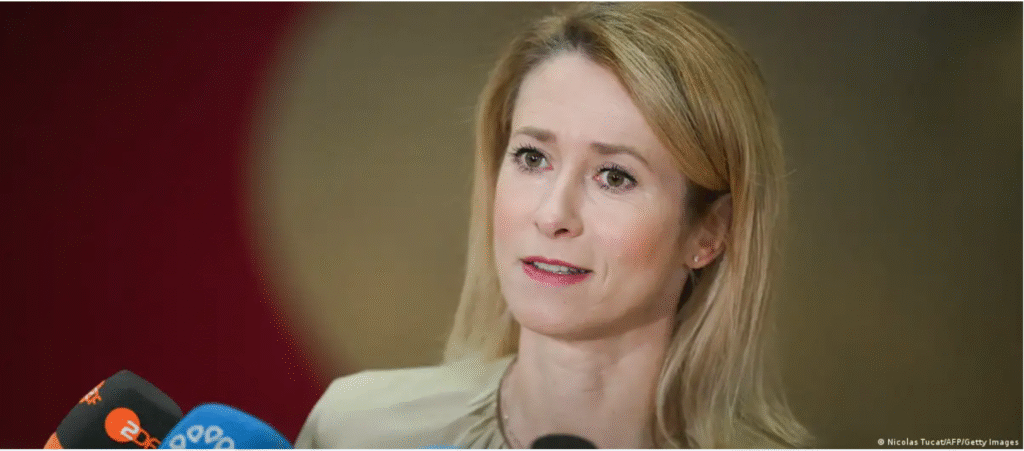 Bruselas, 20 de noviembre de 2025: «Tenemos que entender que, en esta guerra, hay un agresor y una víctima», dice a los periodistas Kaja Kallas, jefa de la diplomacia europea.Imagen: Nicolás Tucat/AFP/Getty Images