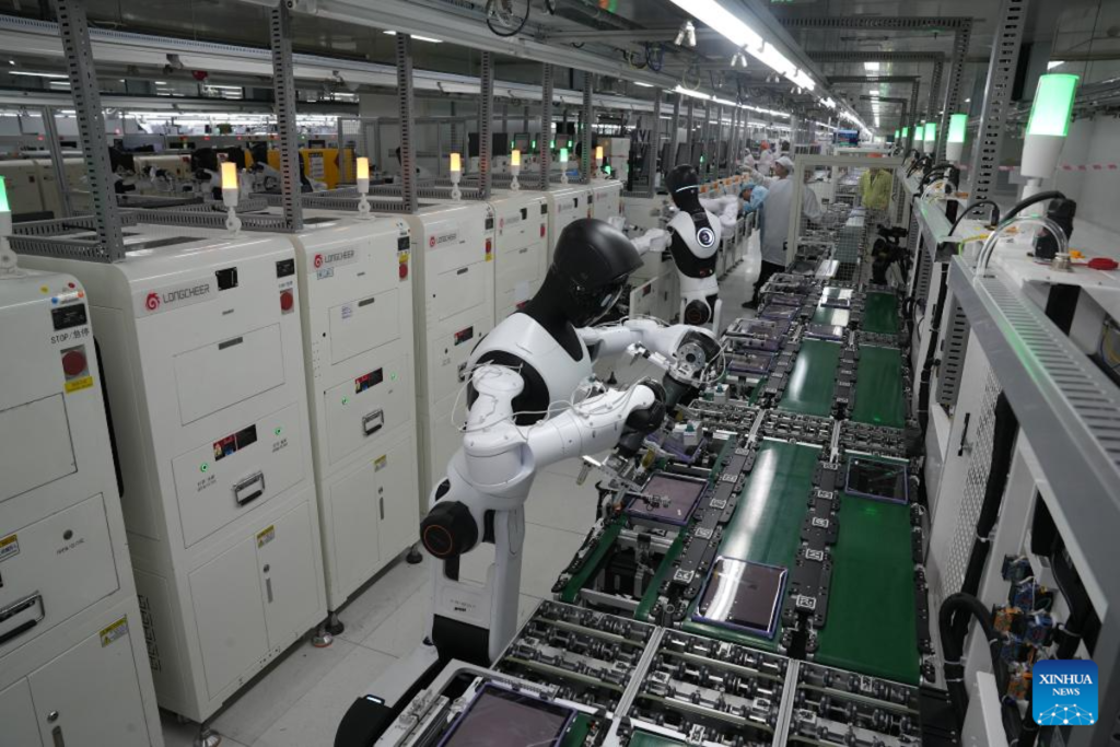 NANCHANG, En un taller de fabricación de tabletas en la ciudad de Nanchang, capital de la provincia oriental china de Jiangxi, cuatro robots humanoides completan un turno de ocho horas, transmitido en directo, en una línea de ensamblaje real que requiere operaciones de precisión.